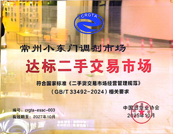 證書(shū)名稱(chēng):常州小東門(mén)調劑市場(chǎng)達標二手交易市場(chǎng)