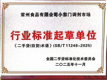 證書(shū)名稱(chēng):常州食品有限公司小東門(mén)調劑市場(chǎng)行業(yè)標準起草單位